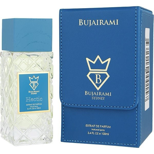 Hectic by Bujairami is a fragrance for women and men. Hectic was launched in 2024. The nose behind this fragrance is Adam Bujairami. Top notes are Citron, Calabrian bergamot and Sicilian Orange; middle notes are Nigerian Ginger, Tunisian Neroli and Ceylon Cinnamon; base notes are Ambroxan and Guaiac Wood.